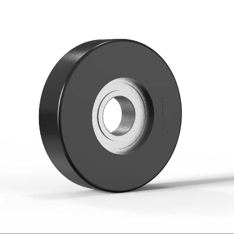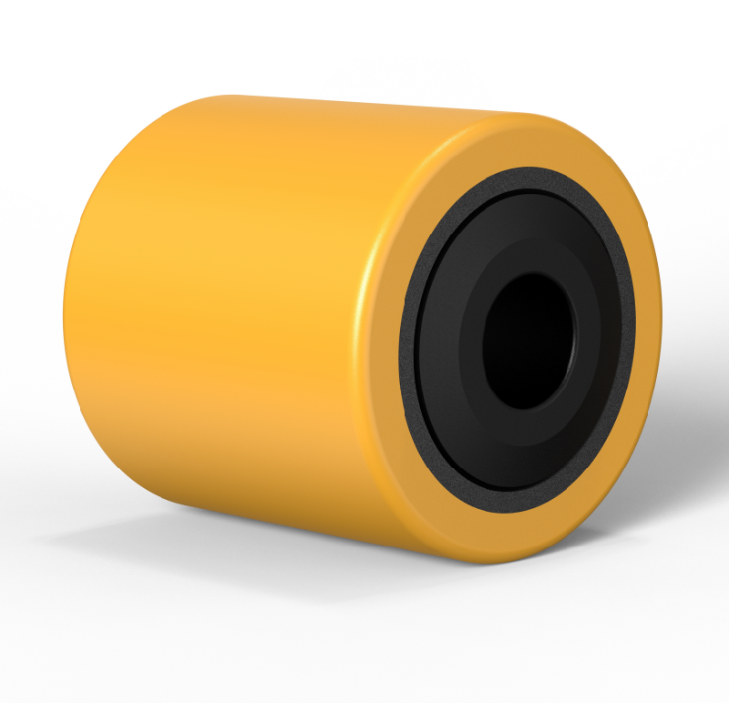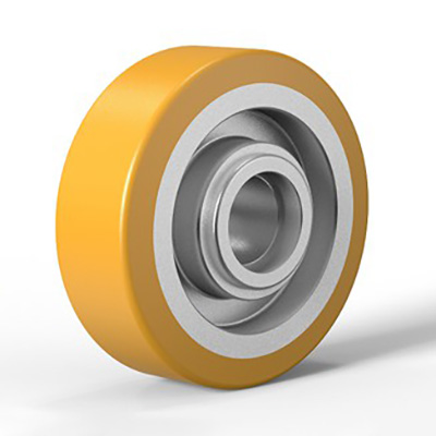 通过化学反应浇注的优质聚氨酯弹性体硬度为93±3 Shore A,行走噪音低,滚动阻力小,保护地面,非常耐磨,抗切割和撕裂强度高,无痕、不染色,与轮芯的粘接效果极佳。